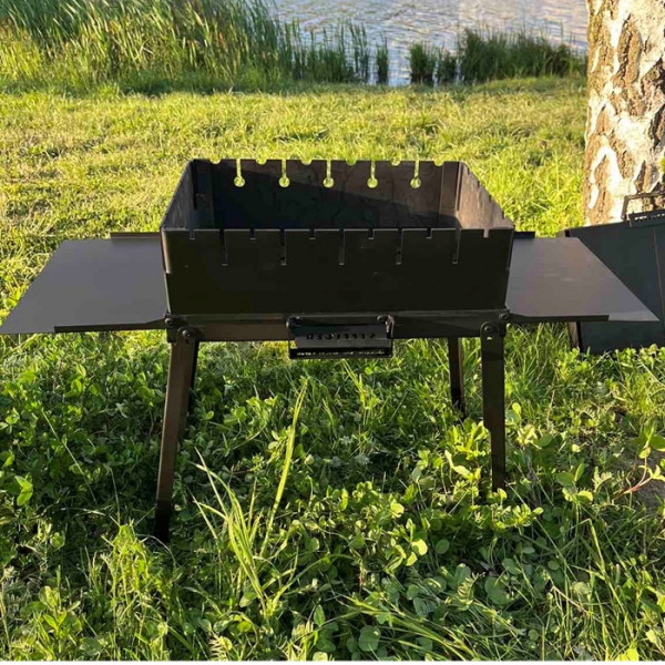 Мангал у форматі чемодана займає мінімум простору та легко поміщається в багажнику, тому зручний для транспортування та зберігання.