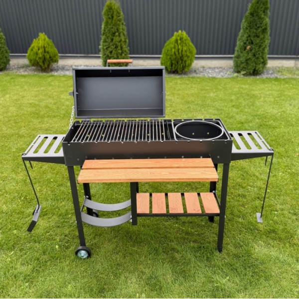 Конструкція підходить як для домашнього використання, так і для заміського відпочинку, забезпечуючи комфортне приготування будь-яких страв на вугіллі.