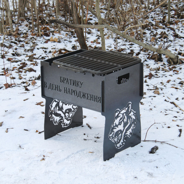 Мангал на 6 шт з барбекю-решіткою розбірний з індивідуальним гравіюванням - Братику в день народження
