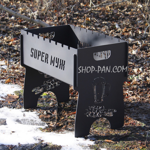 Мангал разборный крашенный на 8 шампуров с индивидуальной гравировкой - Super муж