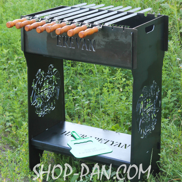 Мангал разборный высокий на 10 шампуров с подставкой для дров и индивидуальной гравировкой