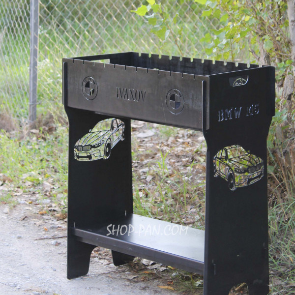 Мангал разборный высокий на 12 шампуров с подставкой для дров и гравировкой - bmw