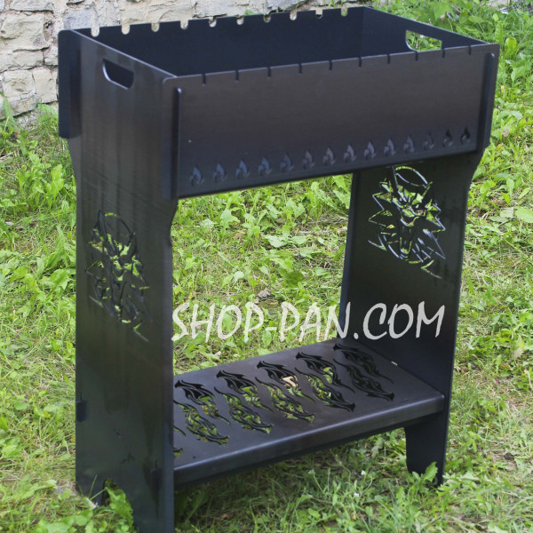 Мангал разборный высокий (с декоративной опорной перегородкой для дров или угля)