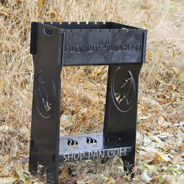 Мангал разборный высокий на 8 шампуров с подставкой для дров и индивидуальной гравировкой