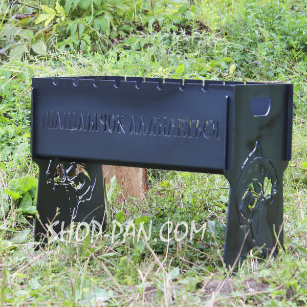 Компактний мангал виготовлений з якісного металу, прослужить не одне десятиліття. Вигравіювати на ньому можна все що завгодно: ініціали власника, побажання, мотивуючі фрази або жартівливий підпис, якій оцінить ваш близький друг.