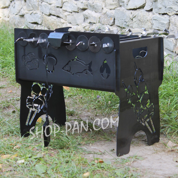 Мангал именный со встроенной шашлычницей и мотором на 8 шампуров