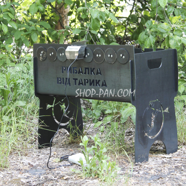 Мангал именный со встроенной шашлычницей и мотором на 8 шампуров - Рыбалка