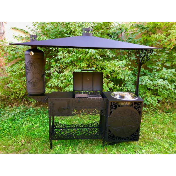 Мангал з мийкою, коптильнею та пічкою