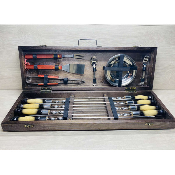 Такий подарунковий набір шампурів створить WOW-ефект ще до його відкриття. Тільки побачивши дерев'яний кейс, майбутній володар набору отримає безмежний вибух захоплення і незабутніх емоцій.