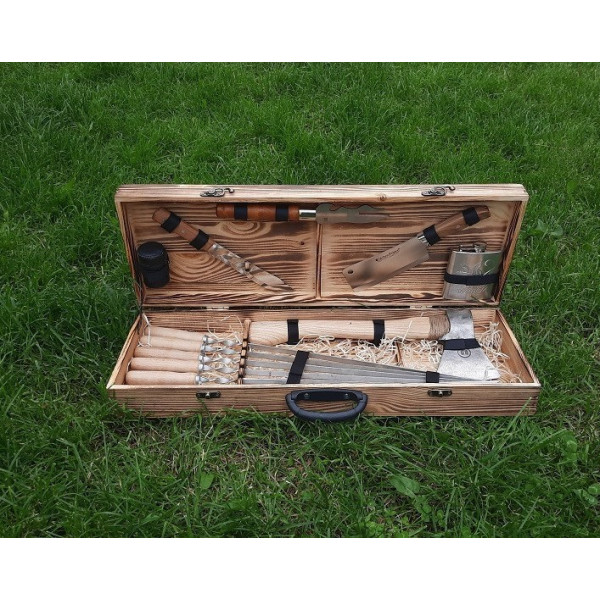 У наборі зібрано все необхідне для приготування різноманітних страв на мангалі або грилі.