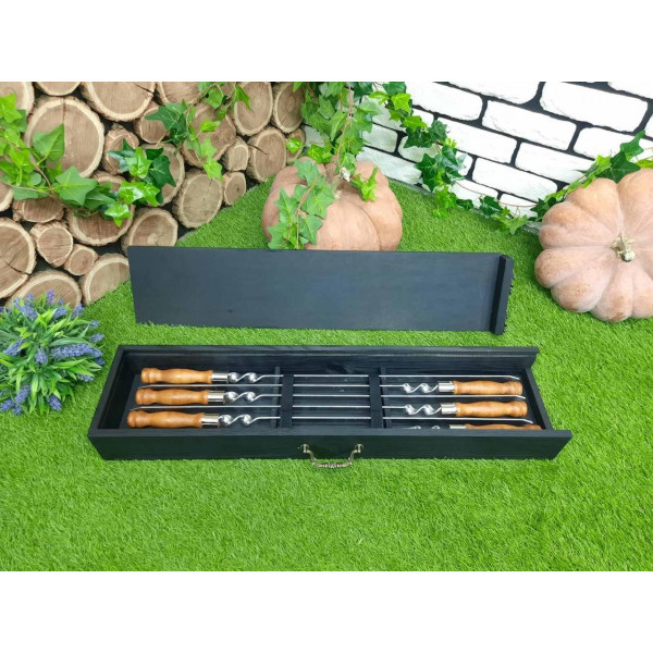 - 6 шампурів з дерев'яною ручкою (загальна довжина 70 см, робоча 50 см, товщина 3 мм)