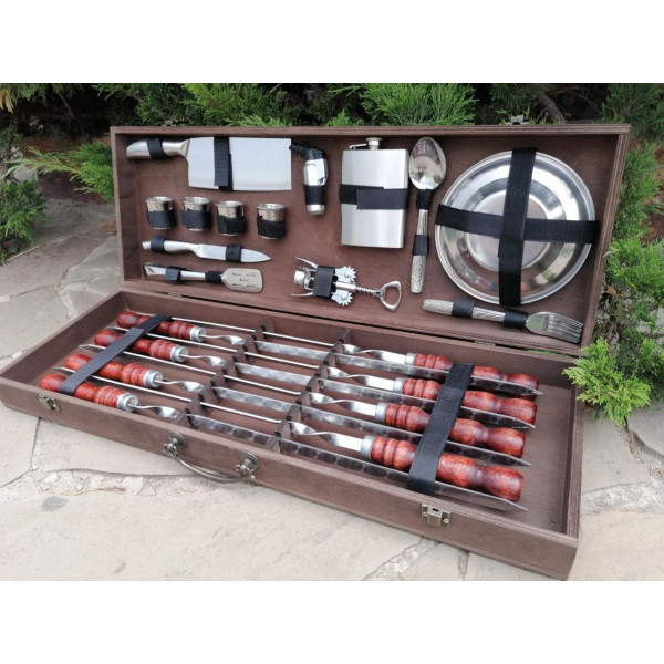 Презентабельний, тому що упакований в красивий дерев'яний кейс. Корисний, тому що максимально спростить приготування страв. Функціональний, тому що в кейсі є все необхідне для приготування різноманітних страв на мангалі або грилі.