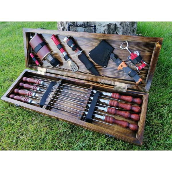 Презентабельний, тому що упакований в красивий дерев'яний кейс. Корисний, тому що максимально спростить приготування страв. Функціональний, тому що в кейсі є все необхідне для приготування різноманітних страв на мангалі або грилі.