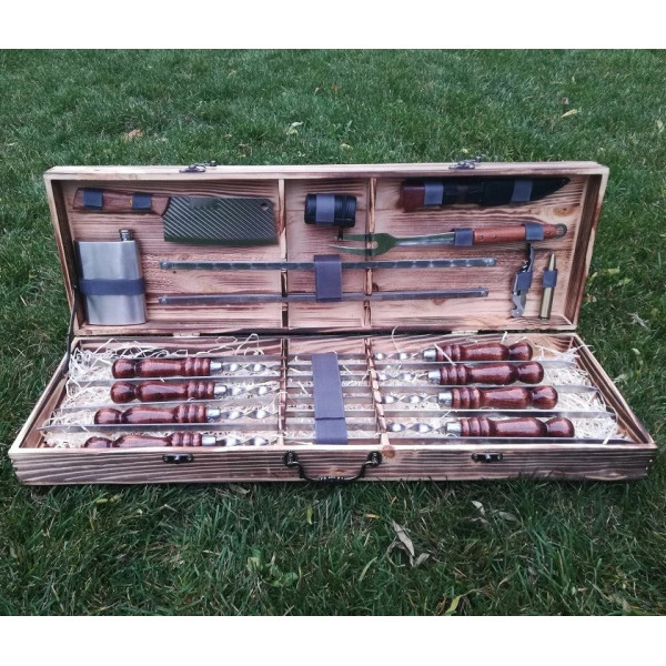 Набор шампуров подарочный в деревянном кейсе (V-011)