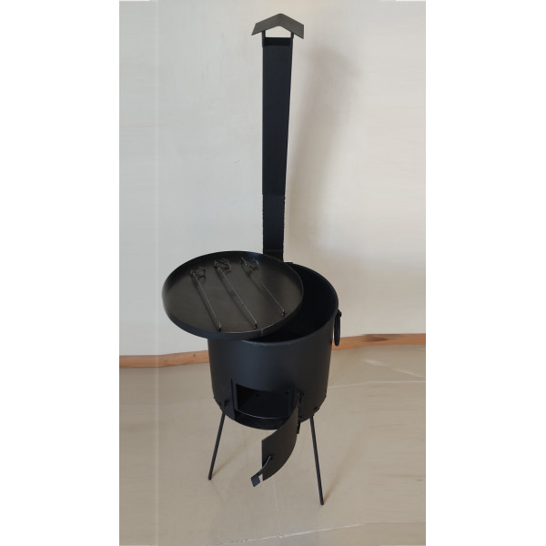 - піч - коптильня - завдяки кришці та 3-х перегородок ви легко зможете приготувати страви гарячого копчення. Тріска лягає на нижній ряд (не в зольник), встановлюється 1, 2 або 3 рівні перегородок, накривається кришкою і процес приготування гарячого копчення почався. Також у кришці є спеціальні гачки, за допомогою яких ви зможете приготувати габаритніші страви.
