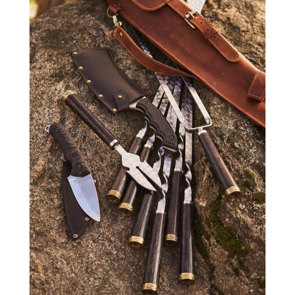 Набір шампурів преміум-класу для барбекю в шкіряному чохлі.