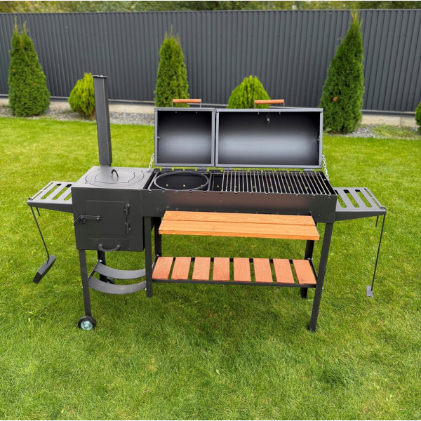 Мангал-гриль-барбекю 5 мм с печкой усилен на 13 шампуров - это выбор для тех, кто стремится к максимальной производительности и широкому функционалу. Он сочетает в себе стойкость, емкость и чрезвычайную практичность, позволяя готовить как классический шашлык, так и полноценные блюда в котле.