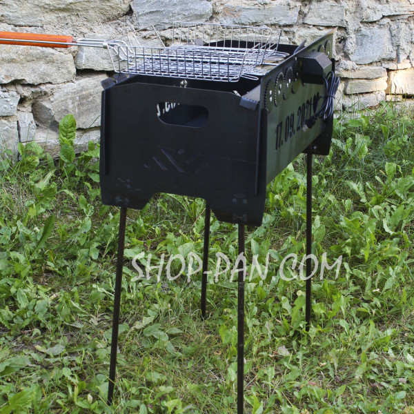 Мангал на длинных ножках со встроенной шашлычницей и мотором на 8 шампуров 2 мм.
