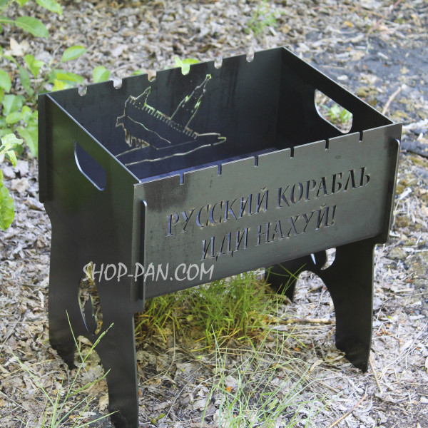 Мангал разборный на 6 шампуров – русский военный корабль с индивидуальной надписью – подарочный