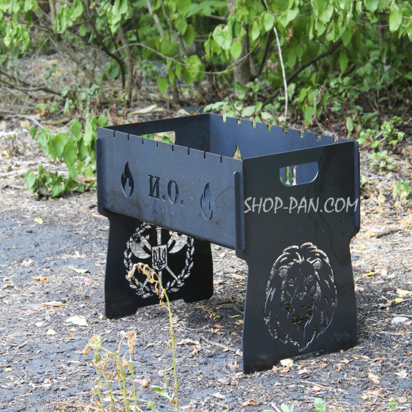Компактный мангал изготовлен из качественного металла, прослужит не одно десятилетие. Выгравировать на нем можно все что угодно: инициалы владельца, пожелания, мотивирующие фразы или шутливую подпись, которую оценит ваш близкий друг.