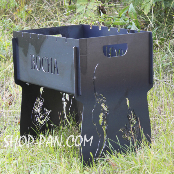 Компактный мангал изготовлен из качественного металла, прослужит не одно десятилетие. Выгравировать на нем можно все что угодно: инициалы владельца, пожелания, мотивирующие фразы или шутливую подпись, которую оценит ваш близкий друг.