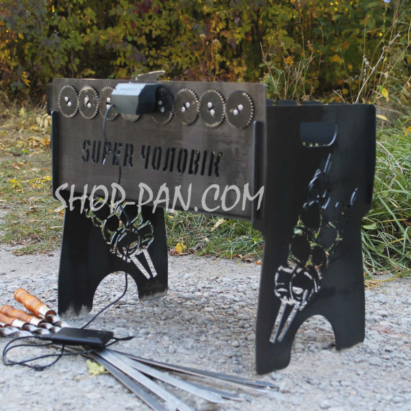 Мангал именный со встроенной шашлычницей и мотором на 10 шампуров.