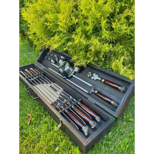 Роскошный премиальный набор шампуров ручной работы станет отличным подарком даже на самый грандиозный праздник.