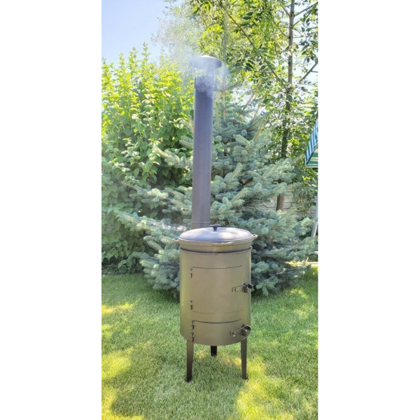Наличие трубы и встроенного регулятора тяги (шибера) позволяет регулировать подачу огня во время приготовления блюд. При необходимости трубу можно снять.